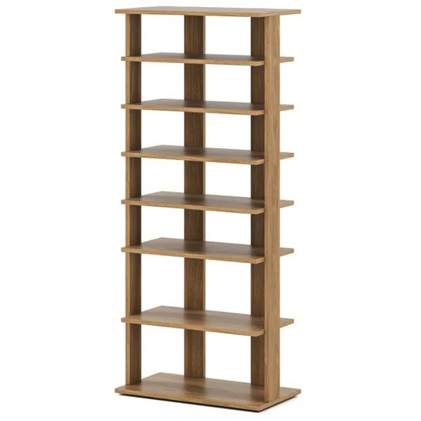 7-Tier Double-Row Shoe Rack With Adjustable Shelves, Anti-Tipping Narrow Storage Rack For Entryway Closet-Natural