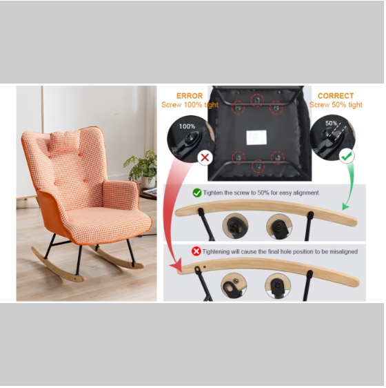 Product Name: 35.5 Inch Rocking Chair, Soft Houndstooth Fabric Leather Fabric Rocking Chair for Nursery, Comfortable Wingback Gliding Rocking Chair with Secure Solid Wood Base for Living Room Bedroom Balcony (Orange)